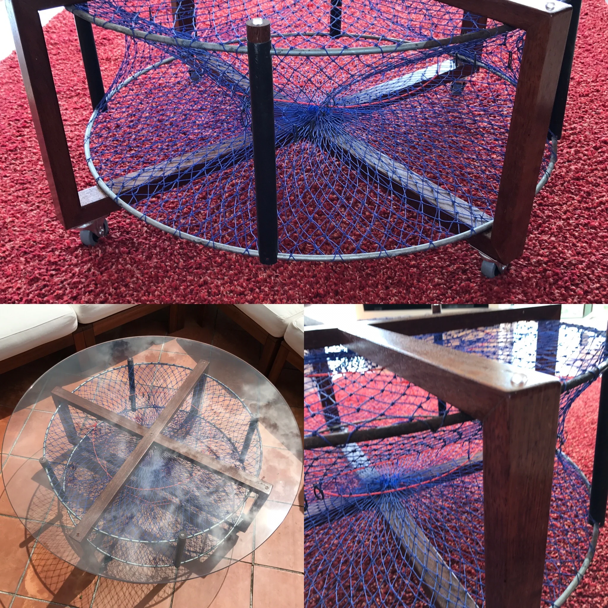 Who knew that crab pots were so beautiful?! Perfect for the fish mad person in your household who's looking for a man cave coffee table or even for the boat... Constructed from pacific merbau and a recycled crab pot, incorporating a 10mm toughened glass top and mounted on castors, this table's perfect for just about any space, all you need is a bit of imagination. Because it's made of merbau and a crab pot, this table will also survive just fine outside, making it even more versatile. Dimensions are Table - 900mm diameter and 410mm high. Toughened glass top - 1050mm in diameter and 10mm thick. It’s available for sale by contacting us directly here.
